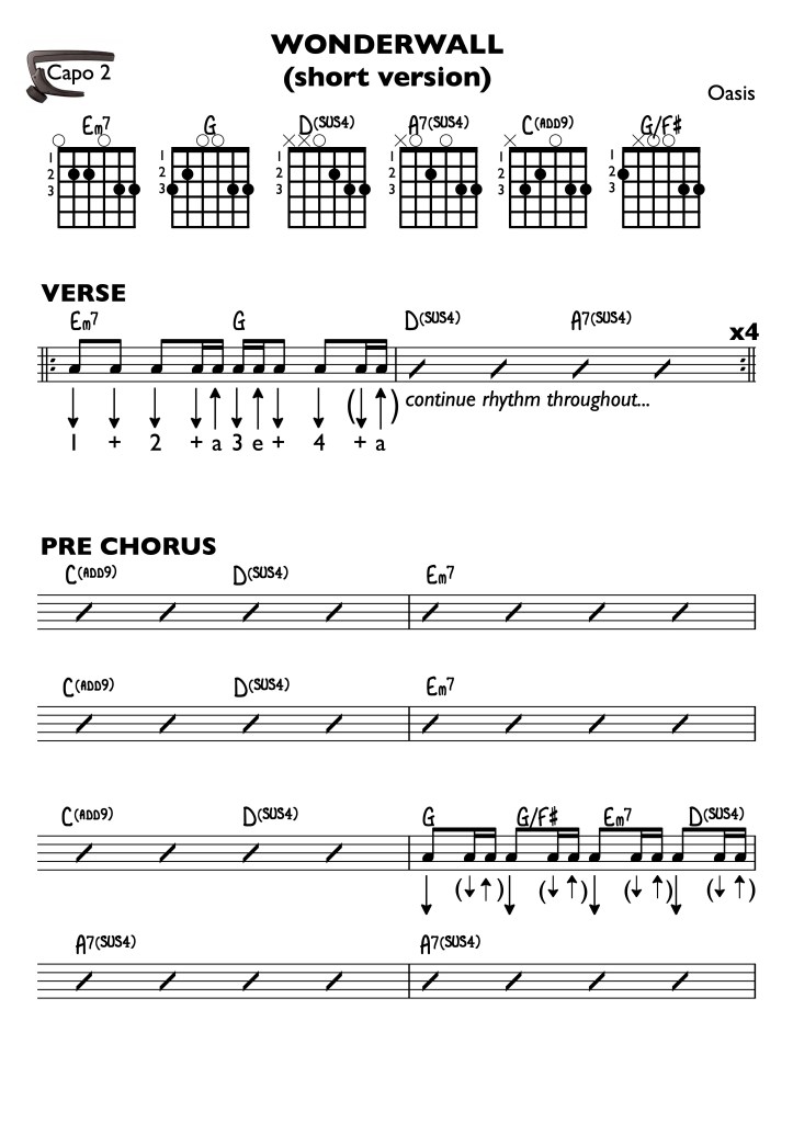 Make sure you master strumming pattern bar 1 first before going onto bar 2! SHEET MUSIC below.